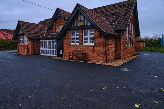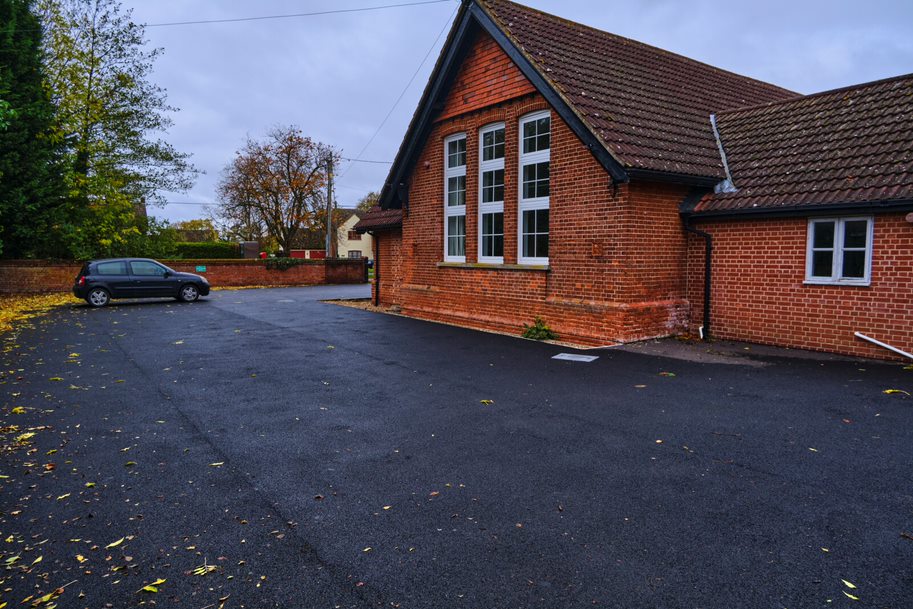 There is a large, fenced, grassed area to the rear of the hall and car parking to the side and front.
